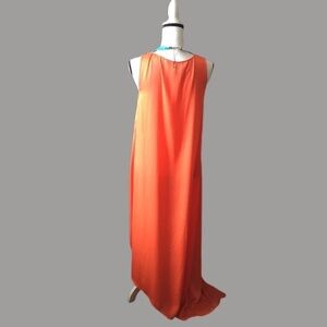 Beautiful bright orange sleeveless slip dress with hi low hemline. Gently preowned condition
