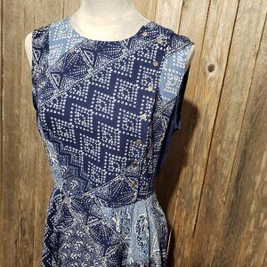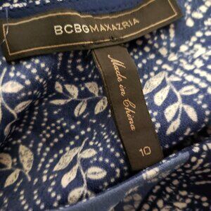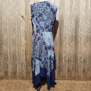 BCBGMaxazria Size 10 Blue Print Midi Dress Handkerchief Hem Sleeveless Women's
