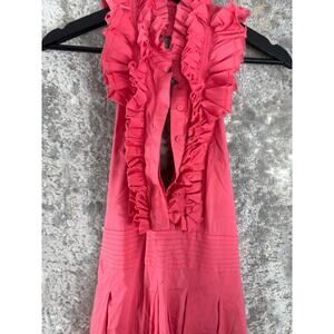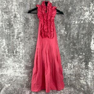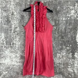 BCBGMaxazria Size 12 Halter Neck Ruffle Flare Dress Pink Tie Sleeveless Button