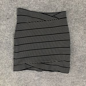 BCBGMaxazria Skirt Womens XS Extra Small Black White Striped Bandage Knit Mini