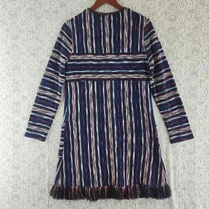 BCBGMaxazria Striped Fringe Long Sleeve Knit Sweater Shift Dress S