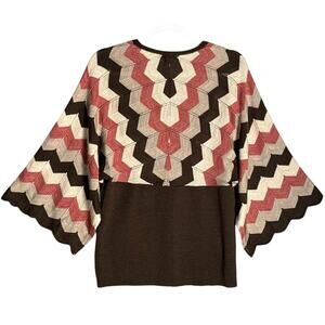 BCBGMaxazria Sz L Dolman Kimono Scallop Sleeve Wool Wrap Sweater Zig Zag Retro