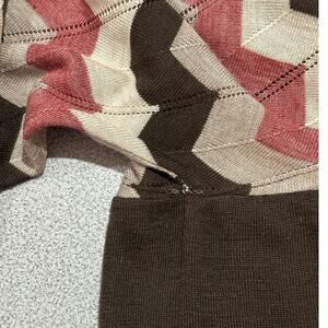 FLAWS: 2 small holes - 1st one pictured on the brown area is the front right bodice area, 2nd one on the zigzag print is the back left shoulder. Otherwise this is new without tag, hanger still attached