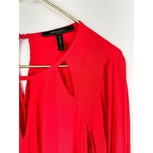 BCBGMaxazria Sz M EMMALISE Dress Bright Red Flowy Long Sleeve Shift Red