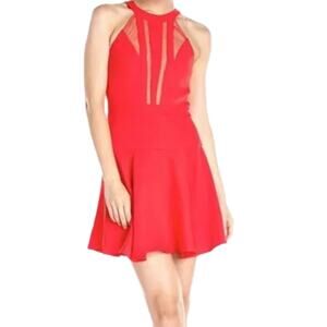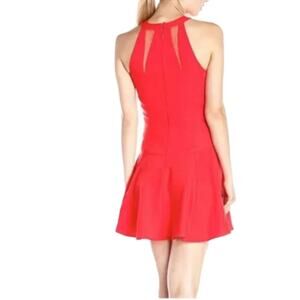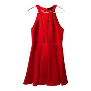 BCBGMaxazria Tatyana Red Halter Cocktail Mesh Inset Dress Women Size 8