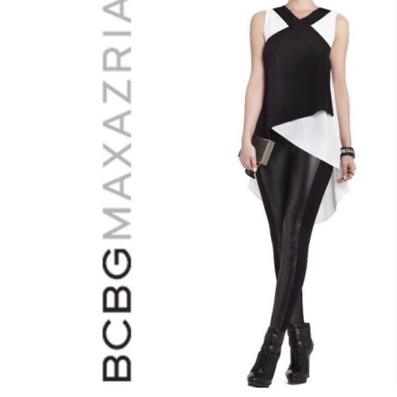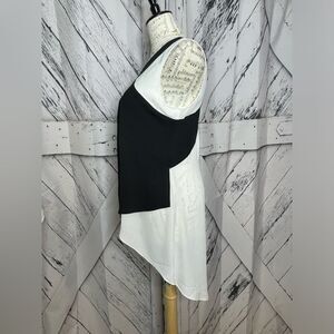 BCBGMaxazria Veronika High/Low Sleeveless Top Black White S
