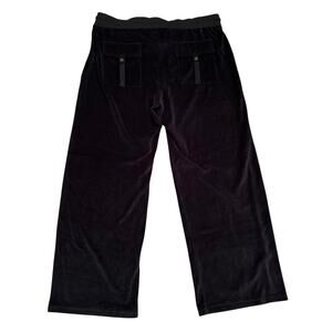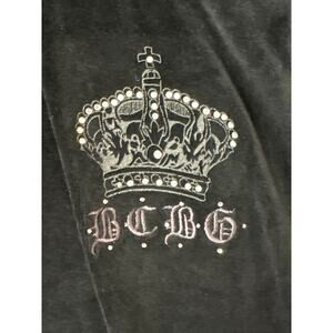 BCBGMaxazria Vintage Velour Track Pants Rhinestone Crown Logo Black Sz 2X Y2K