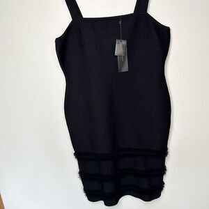 BCBGMaxazria Women’s Black Heavy Knit Sleeveless Fringe Trim Fitted Sheath Knee