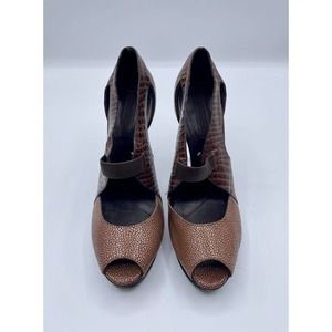 BCBGMaxazria Women’s Croc embossed leather peep toe heels 8