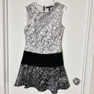 BCBGMaxazria Women's Dress 8 Black Fit Flare Artsy Geometric Classic Minimalist
