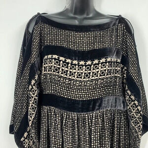 BCBGMaxazria Women's Patterned Velvet Open Sleeve Silk Blend Dress Size M
