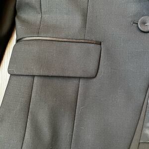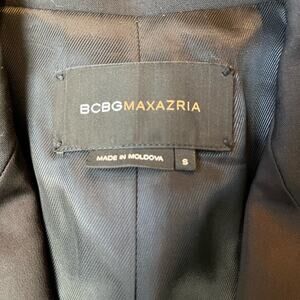 BCBGMazazria women's size small single button black career blazermwith faux front pockets and 4 buttons on the sleeves. In excellent condition from a smoke free Home.