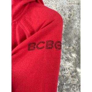 BCBGMaxazria Womens Size M Rhinestone Hooded Full Zip Sweater Red Long Sleeve