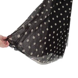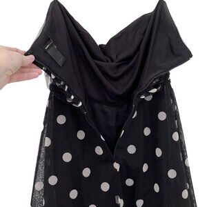 BCBGMaxazria Womens Strapless Midi Dress Size 6 Black Tulle Lined Polka Dots