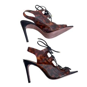 BCBGMaxazria Women’s Tortoise Shell Leather Lace-up Demi Heel Sandals Size 8.5
