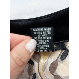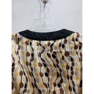 BCBGMaxazria Womens Wrap Blouse Size Medium Yellow Brown Abstract Satin Top