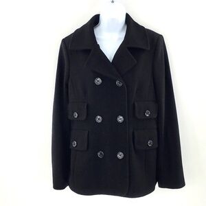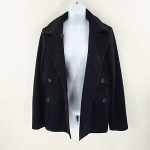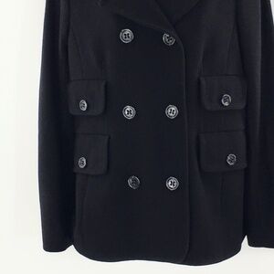 BCBGMaxazria Wool Coat Black Double Breasted Pea Coat Notch Lapel Sz M