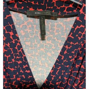 BCBGMaxazria Wrap Dress Women’s Size XS Red Blue V-neck Pleated Knee Length