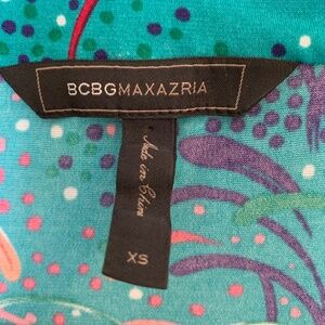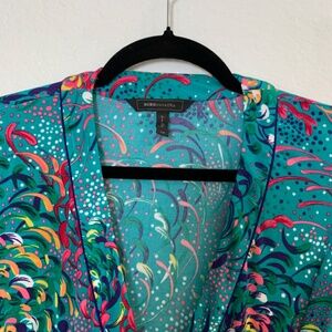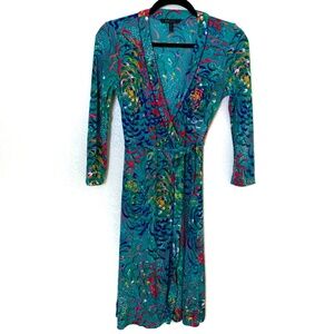 BCBGMaxazria Wrap Dress XS Teal Blue Floral Artsy Career Office Classic