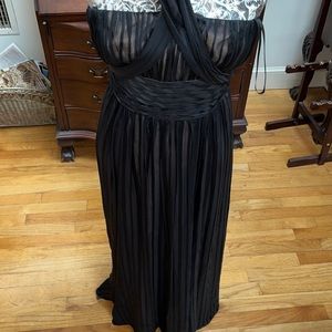 BCBGMaxAzria size 2-4 black semi sheer strapless formal maxi dress nude lining