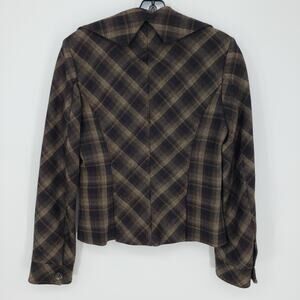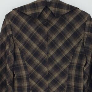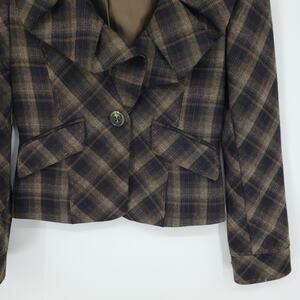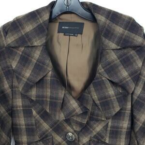 BCBGMaxazria Y2K Plaid Blazer Jacket XS Wool Ruffle Collar Brown Black BCBG