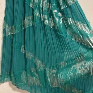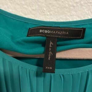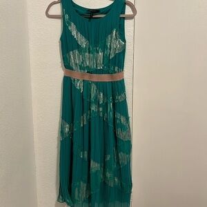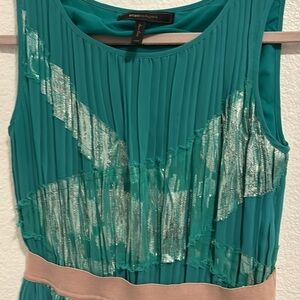 BCBGMaxazria green and silver sleeveless round neck midi dress size XXS
