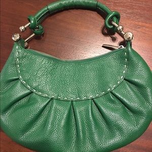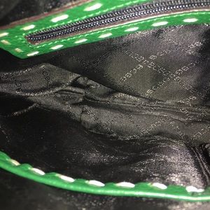 Emerald green leather with black and white sticking in a ova led shape with knotted handles. Never worn- received as a gift! Flawless condition. Black interior. 100% authentic. MAKE AN OFFER💁🏼