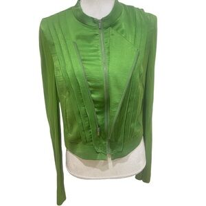BCBGMaxazria green lightweight zip up moto style jacket polyester size medium