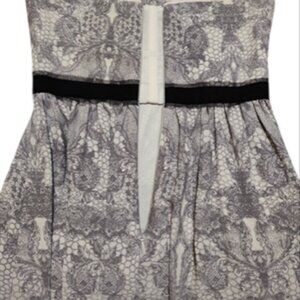 Step out in stunning style with this incredible BCBGMaxazria strapless evening gown! Featuring a chic gray and black print, this dress is perfect for making a statement at any event. It's designed to flatter with a fitted 14" waist and 14.5" pit-to-pit measurement and 12" zipper, giving the ideal silhouette. With an overall length of 52", you'll feel elegant and poised all night long. This gown is likely a size 2-4, making it a versatile addition to your wardrobe. Don't miss your chance to shine in this gorgeous piece!