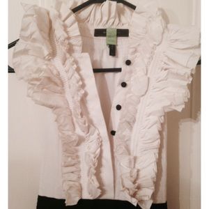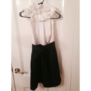 Very unique tuxedo style dress from BCBG with ruffled top, textured skirt, and tie in the back. Amazing fit and great party/hosting dress