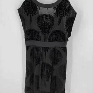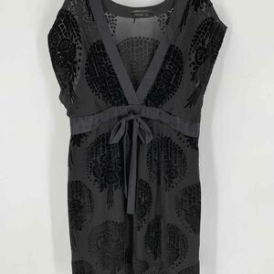 BCBGMaxazria Black Jacquard Women's V-Neck Zip Up Midi Flared Dress 12