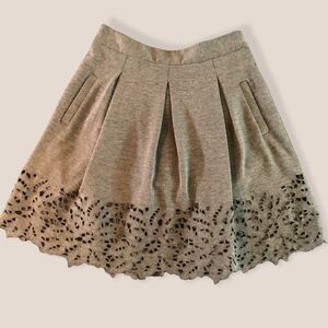 BCBGMaxazria Kailin Pleated Laser Cut Mini. Fully lined. Two front pockets. Side zip. Perfect condition. Heather gray.