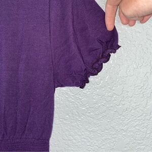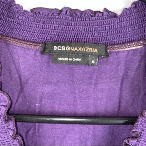 BCBGMaxazria Womens Ruffle Trim V-Neck Short Sleeve Pullover Blouse Purple Small