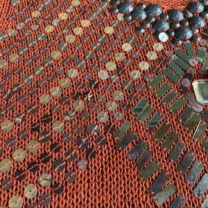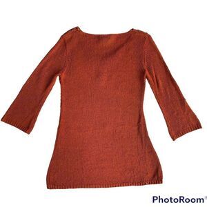 BCBGMaxazria embellished loose knit 3/4 sleeve tunic rustic burnt orange Large