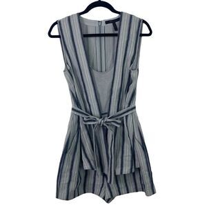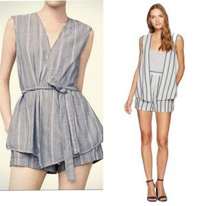 Fun romper by BCBG Maxazria. Can be worn open or closed. Back zipper. Fits a size 0 or 2. I wore it when I was a size 2 and it fit well and I’m curvy. I removed the inside tag because it was rubbing.