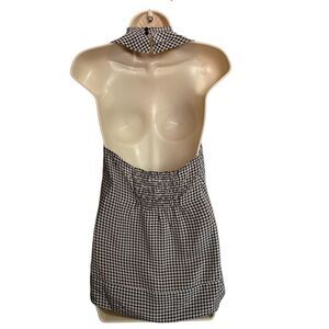BCBGMaxzazira White & Black Checkered Plaid Silk Halter Rockabilly Top Size S