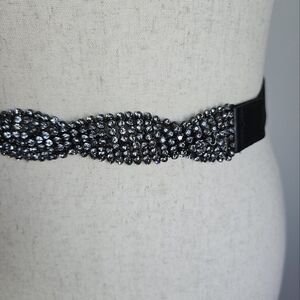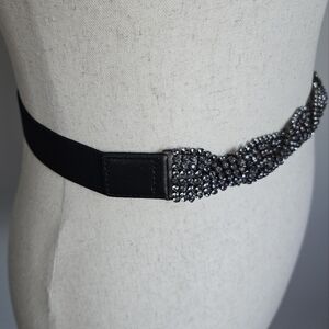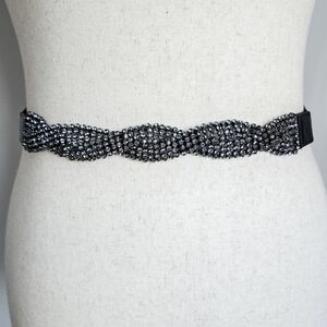 BCBGMazAzria, Black Braided Stone Jewel Waist Statement Stretch Belt, Size Small