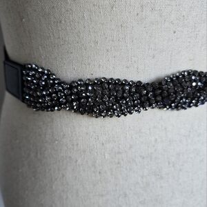 BCBGMazAzria, Black Braided Stone Jewel Statement Stretch Belt, Size Small