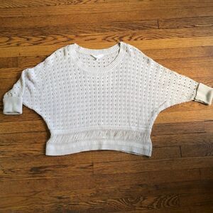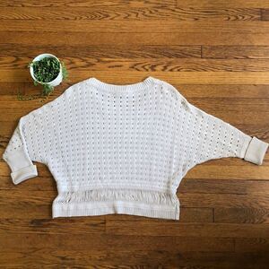 Super cute and versatile sweater. Oversized look. Dolman sleeves. I worn this throughout the year. Tied around my waist for cool spring/summer nights, over tanks transitioning to fall and over dresses with boots during the winter.