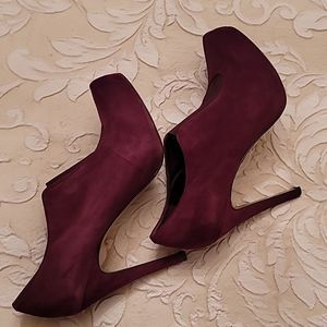 Pretty up any outfit with the Priyah by BCBG. Suede wraps this adorable ankle bootie while featuring an elastic vamp. Adding height and completing this functioning look is a 4 1/2 inch heel.