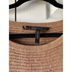 BCBG Tan Ribbed Knit Dolman Sleeve Camille Cropped Sweater