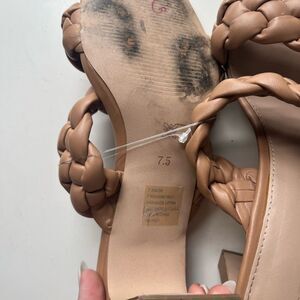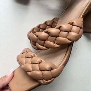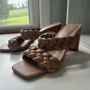 Step out in style with these elegant braided tan heels. Perfect for any occasion.