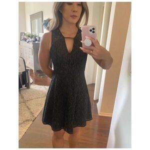 BCBGeneration 0 black and gold lace Women's Flare Mini Dress