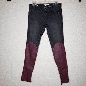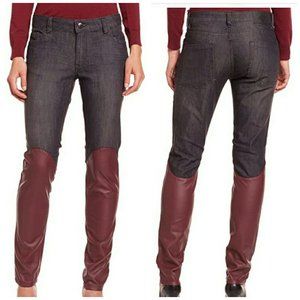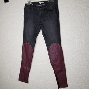 BCBGeneration Black and Dark Red Faux Leather and Fabric Jeans in Size 25.
