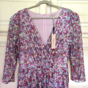 BCBGeneration 3/4 Sleeve, Faux Wrap, High Low Dress in Pink Floral, Sz 14, NWT