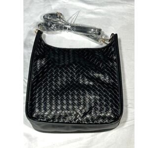 NIP: Trendy, black faux-weave crossbody hobo bag with 3 different interchangeable straps for versatile styling.