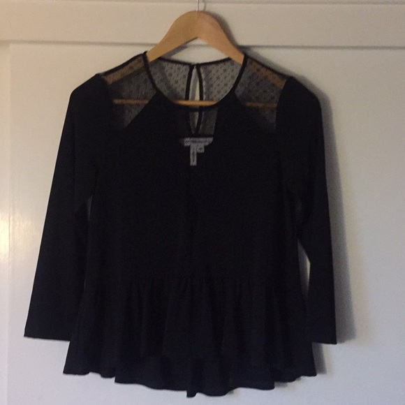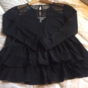Super cute 3/4 sleeve blouse with lace and exaggerated ruffle. Wore once.