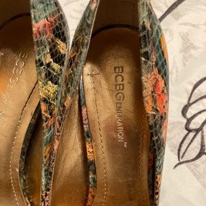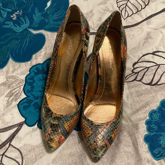 BCBGeneration Snakeskin Heels. Multi-color. Size 9.5. Excellent condition. Gently used. No scuffs of scratches.