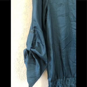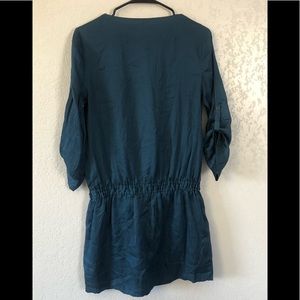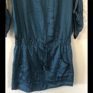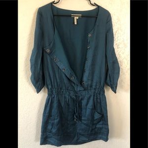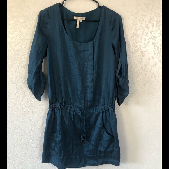 Dress with elastic waist and adjustable ribbon, press-studs down the front, round neck, with pockets on both sides