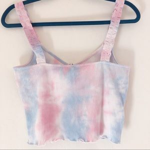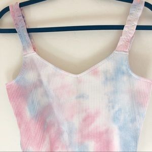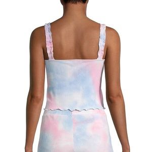 Chic rib-knit tank top with dreamy tie-dye design.